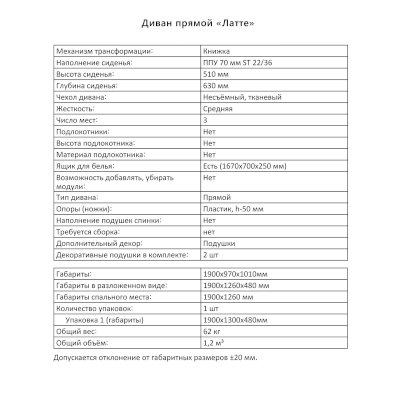 Диван Латте (Аквилон) продается в интернет-магазине mebelin-serpuhov.ru по цене 28 547 руб. Есть доставка по Серпухову и Московской области. Возможность подъема на этаж и сборки уточняйте у менеджера по телефону 8(800)505-27-11.