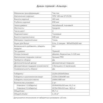 Диван Алькор (Аквилон) продается в интернет-магазине mebelin-serpuhov.ru по цене 63 963 руб. Есть доставка по Серпухову и Московской области. Возможность подъема на этаж и сборки уточняйте у менеджера по телефону 8(800)505-27-11.