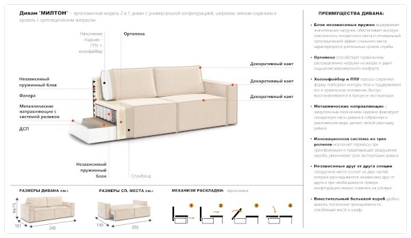 Диван Милтон (Империал) продается в интернет-магазине mebelin-serpuhov.ru по цене 60 770 руб. Есть доставка по Серпухову и Московской области. Возможность подъема на этаж и сборки уточняйте у менеджера по телефону 8(800)505-27-11.